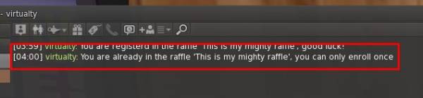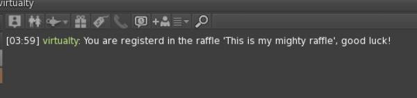 Clicking this button you will receive in world the list of active and inactive raffles.