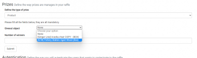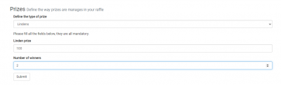 In this section you can specify what are the prizes for the winner(s) of the raffle.