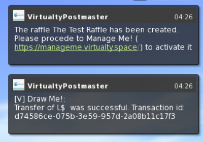 In Particular, though, you will receive IMs informing who won, that the prize or the money have been sent, or just the message stating who is the winner: