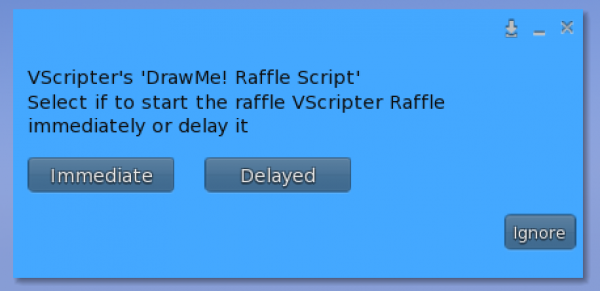 Of course this will have to be set up in SL Time and the script that opens the raffle will run every 10 minutes, to see if there is a new raffle to start or not.