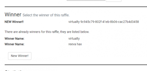 It also possible to decide the winner off line. This option is only selecting a (new) winner, it is NOT sending money or object to the winner of the raffle.