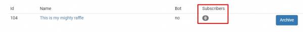 Winners- Shows you the winner for the raffleDeactivate- Deactivated the specific raffle, so that it will NOT accept new users to enter it, and you can, later on, decide to draw the winner
