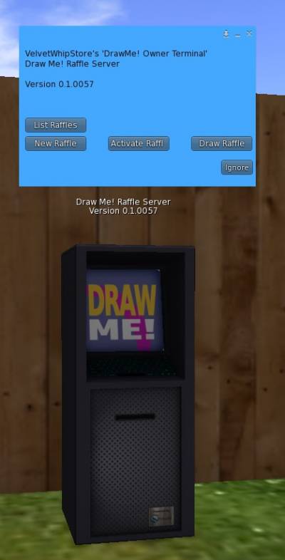 DrawMe! Owner Terminal- The Owner Terminal that will be used to create the new Raffles and to extract the winnerDrawMe! Raffle Script- The actual Raffle element. This is just a simple box, because you can decide to put the scripts that are inside it in another object and use it as a Raffle element