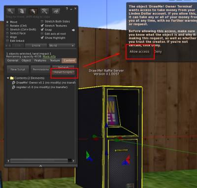 You will be asked to allow to access your L$. This is of course to pay the fee for the raffles.