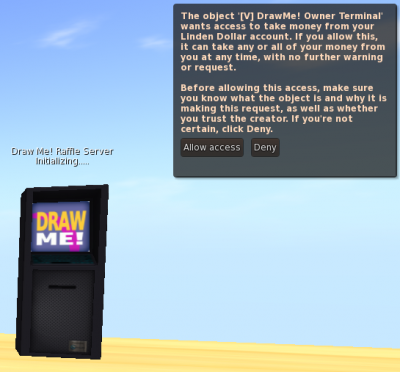 If you plan to give objects as prize for the raffle, remember that you have to place the object(s) in the Owner Terminal: