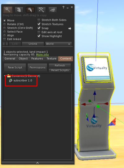 This is a fully operational tool that links Second Life™ with an external platform, accessible via your in-world name and a password that can be retrieved from the Virtualty Office. (http://maps.secondlife.com/secondlife/Falcata/70/154/26)