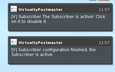 After a few moments, you will receive an IM from VirtualtyPostmaster stating that the first configuration is finished and you can now activate the Subscriber: