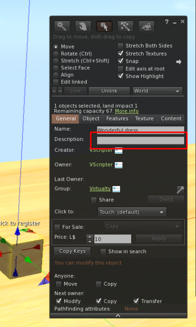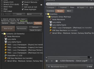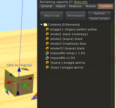 Once you have placed both scripts in your hud, just insert in the description of the container object the two chars you will use to define what is the common element to search: