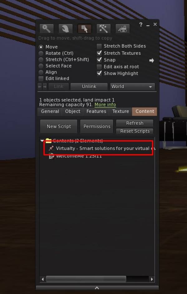 This is a fully operational tool that links Second Life™ with an external platform, accessible via your in-world name and a password that can be retrieved from the Virtualty Office (http://maps.secondlife.com/secondlife/Falcata/70/154/26)